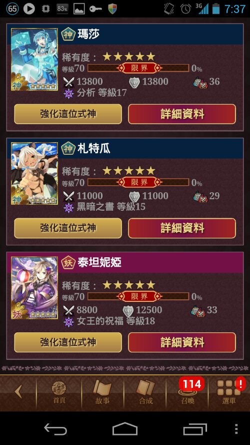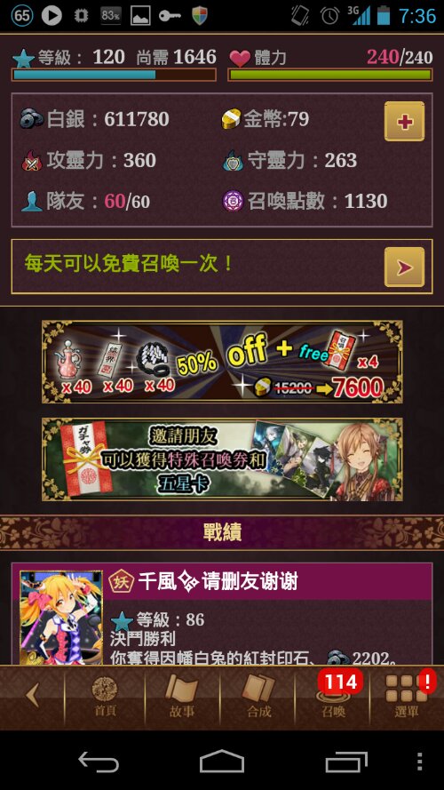 等级114,FB账号白送,身上附女神+灵水=50,iOS还有300+小判。